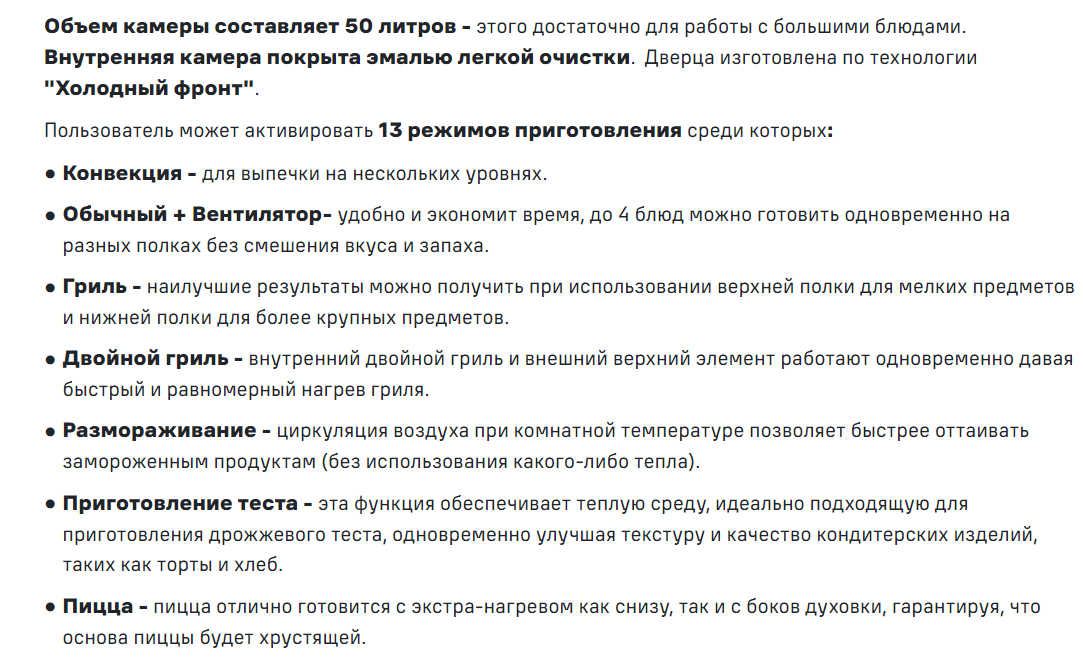 Объём духовки |