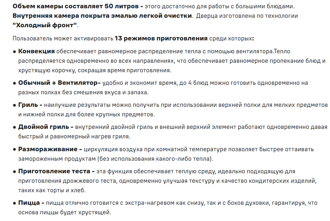 Объём духовки |