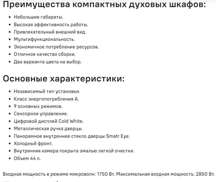 Объём духовки |