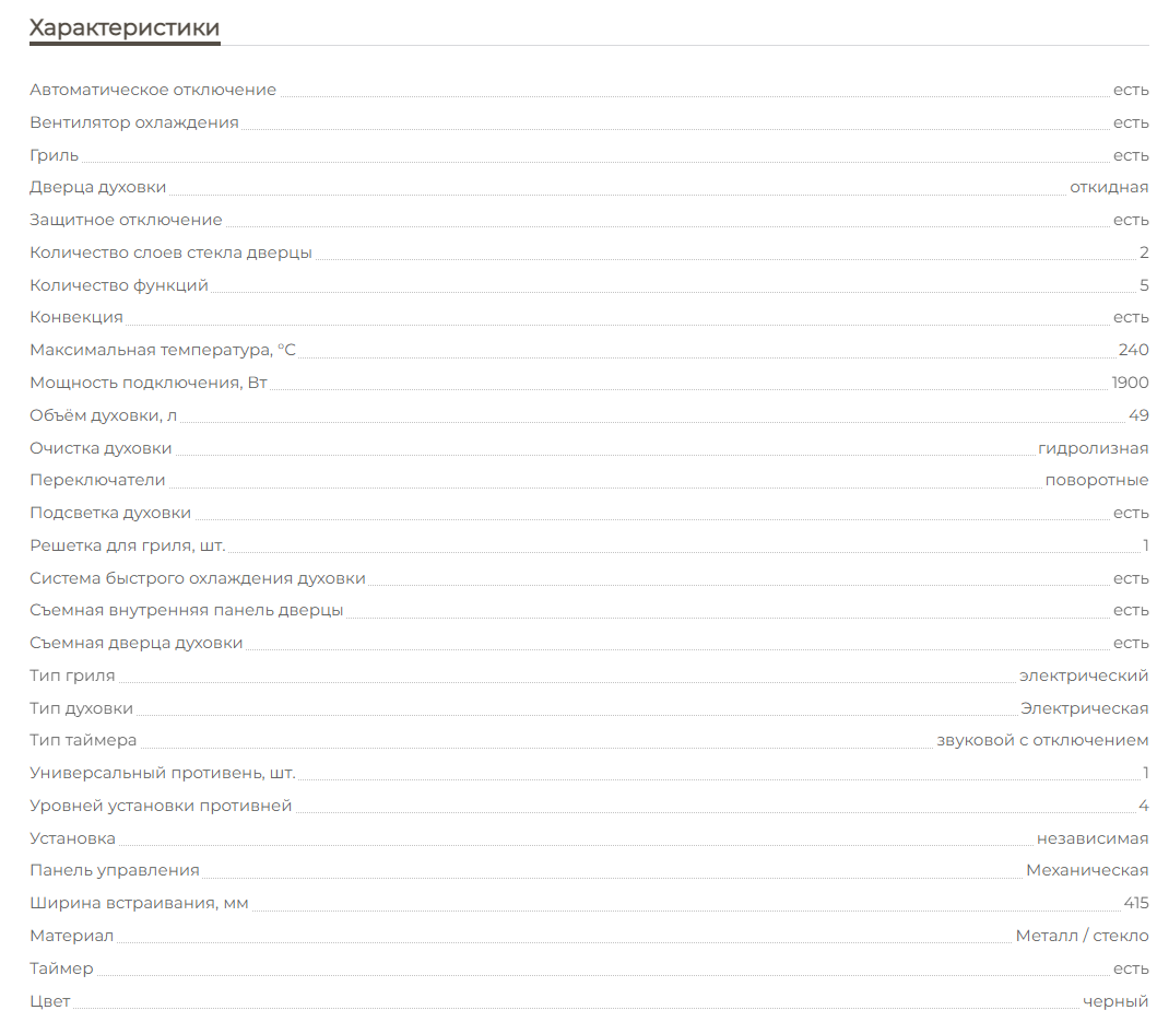Объём духовки |