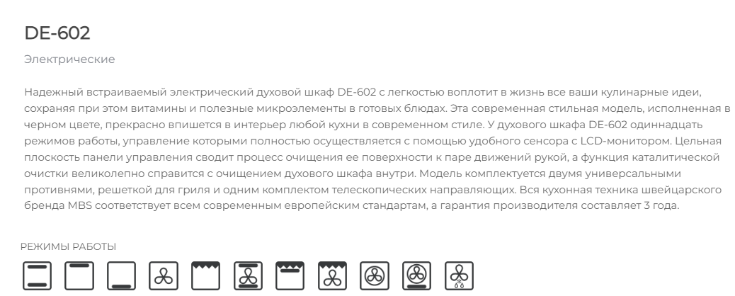 Электрический духовой шкаф MBS DE-602