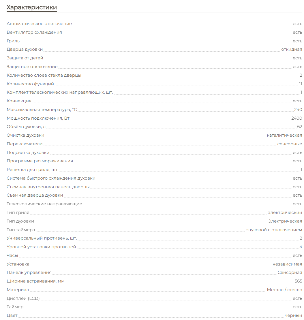 Объём духовки |