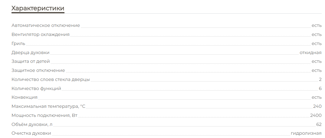 Объём духовки |