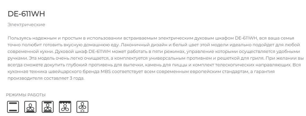 Электрический духовой шкаф MBS DE-611WH