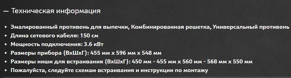 Объём духовки |