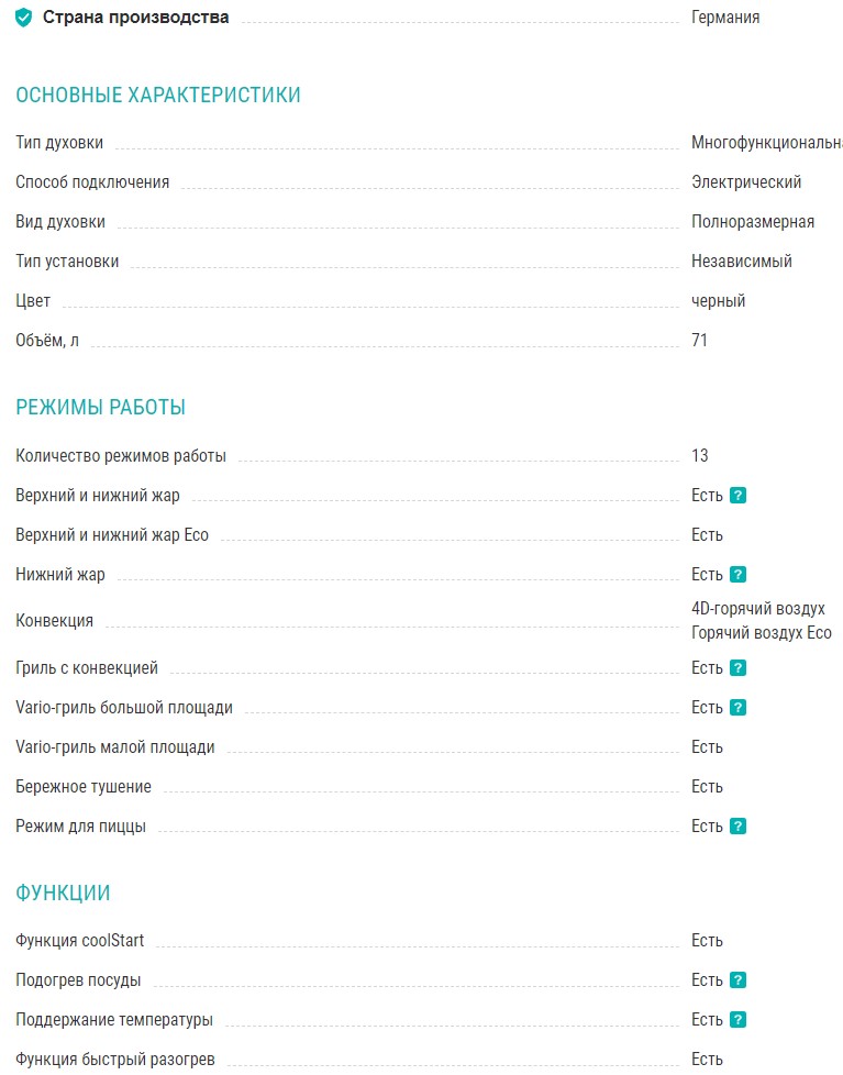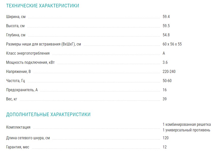 Объём духовки |