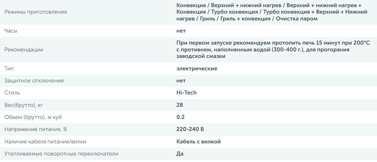 Объём духовки |