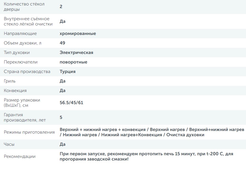 Объём духовки |