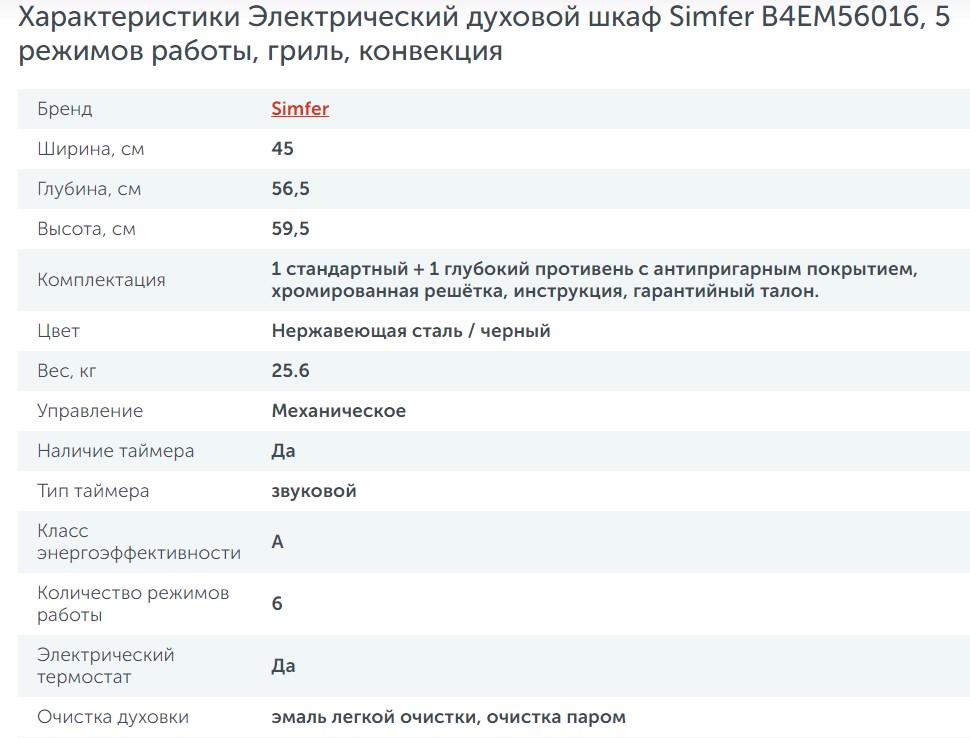 Электрический духовой шкаф Simfer (Симфер) B4EM56016