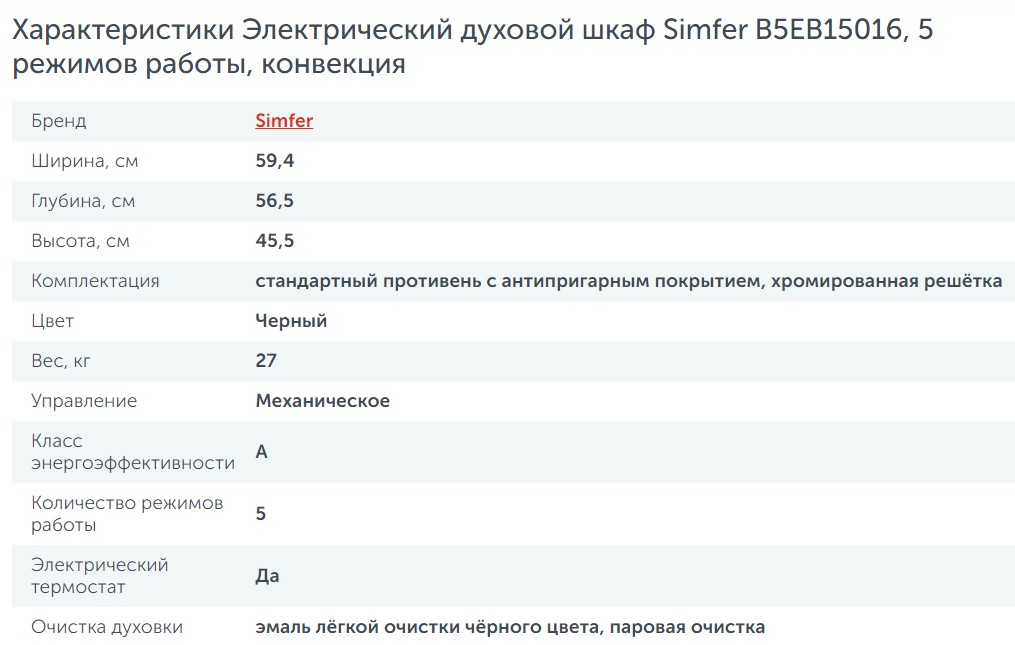 Электрический духовой шкаф Simfer (Симфер) B5EB15016