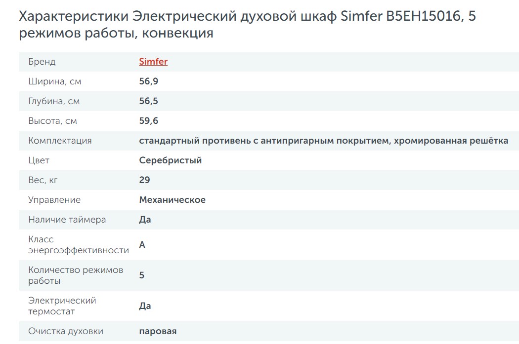 Электрический духовой шкаф Simfer (Симфер) B5EH15016