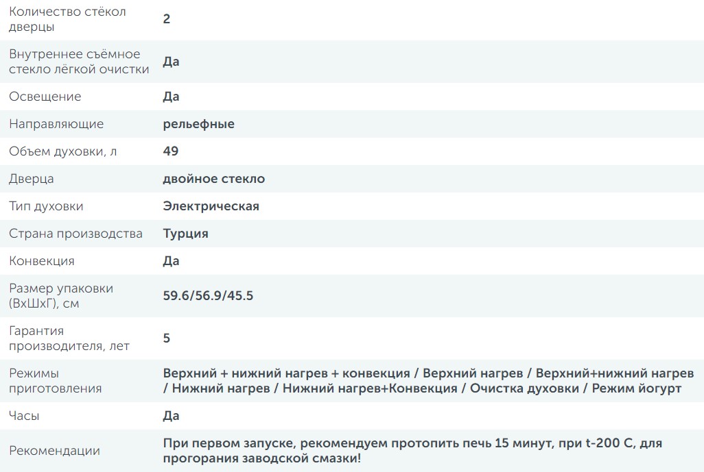 Объём духовки |