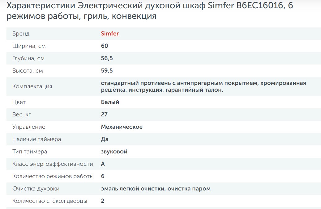 Электрический духовой шкаф Simfer (Симфер) B6EC16016
