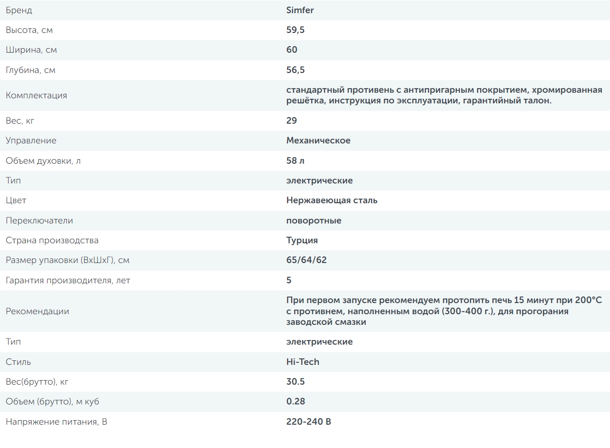 Объём духовки |