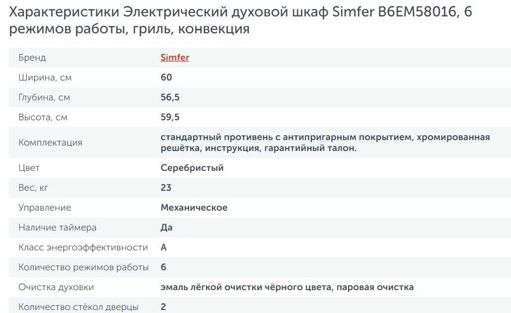Электрический духовой шкаф Simfer (Симфер) B6EM58016