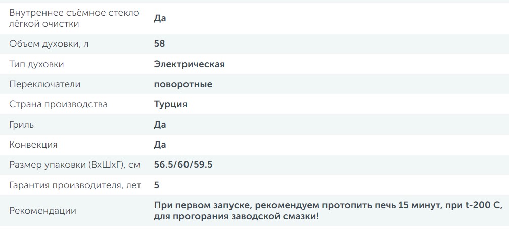 Объём духовки |