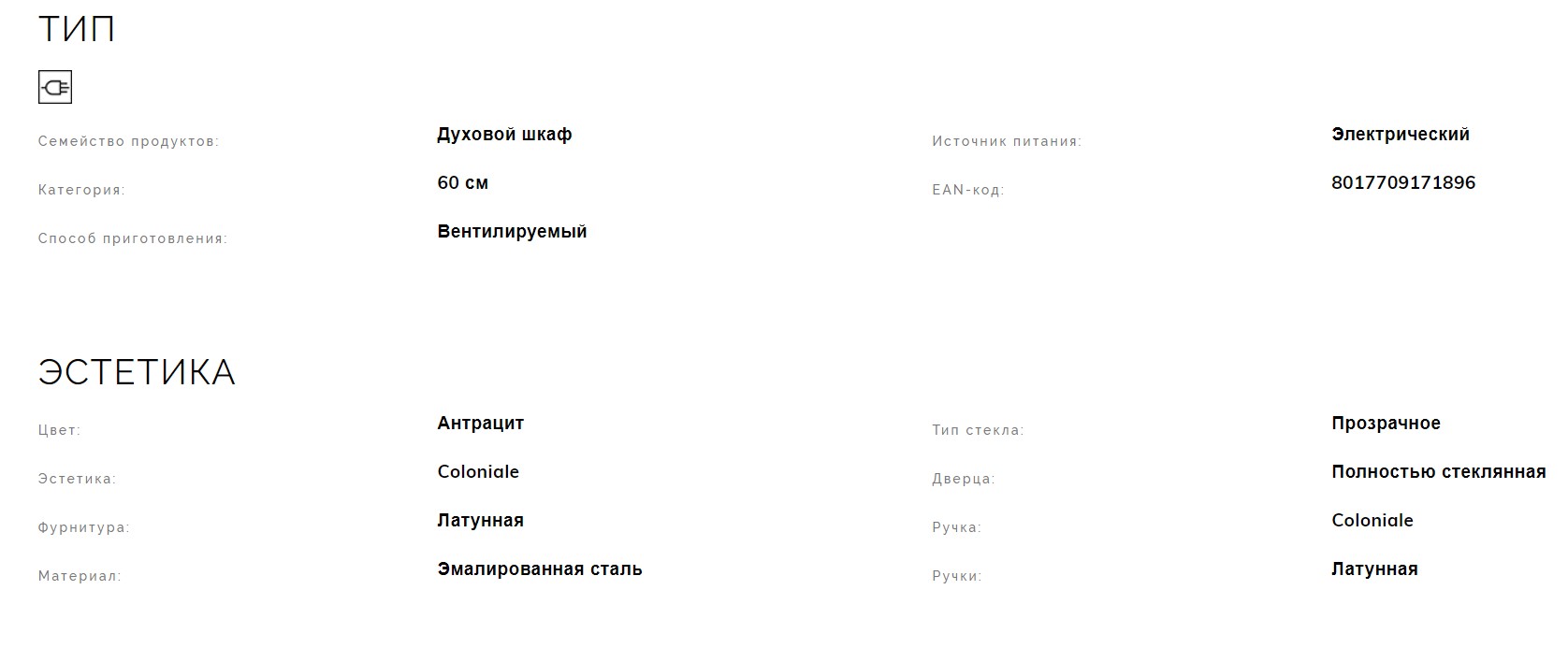 Электрический духовой шкаф Smeg (Смег) SF800AO