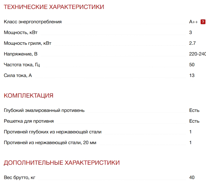 Объём духовки |