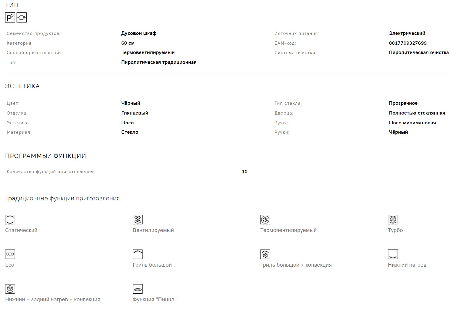 Объём духовки |