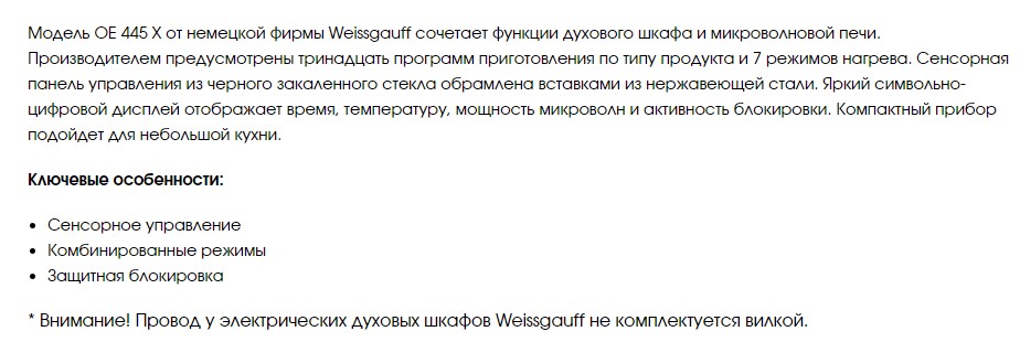 Электрический духовой шкаф Weissgauff (Вайсгауф) OE445