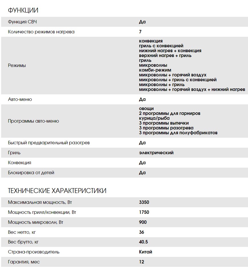 Объём духовки |