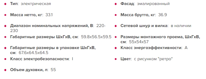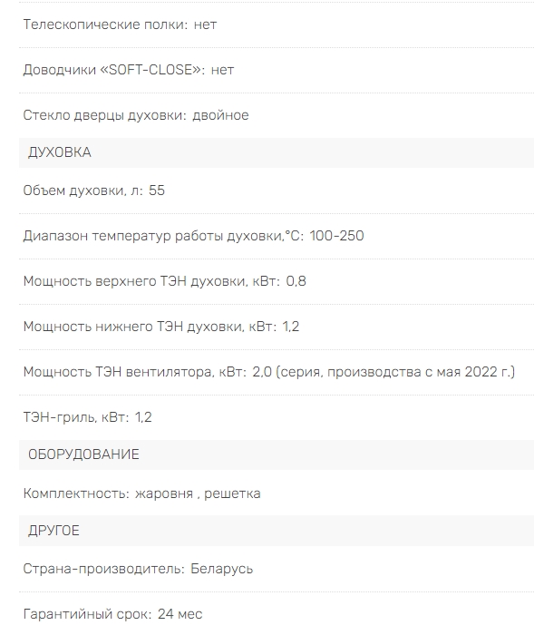 Объём духовки |