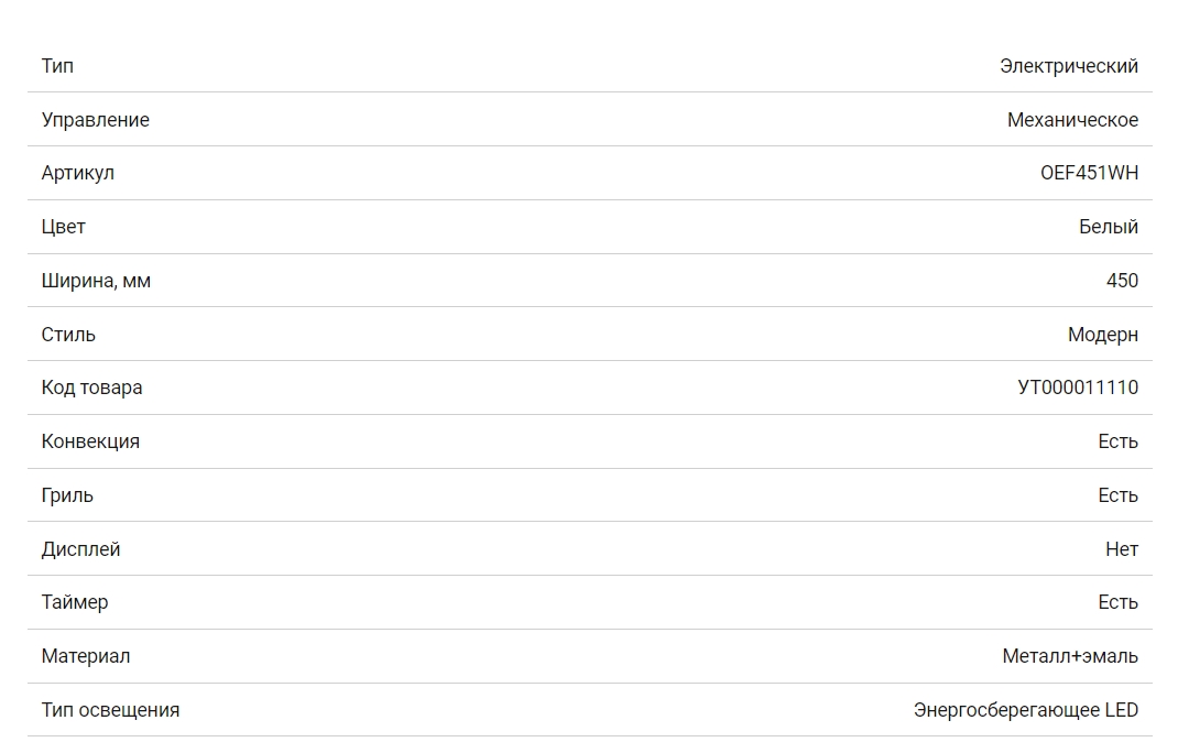 Электрический духовой шкаф HOMSair (ХОМСэйр) OEF451WH