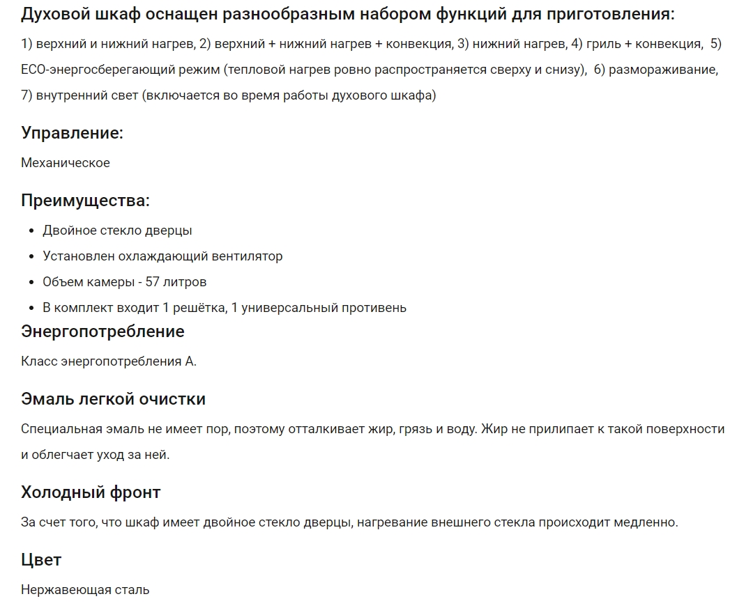 Объём духовки |