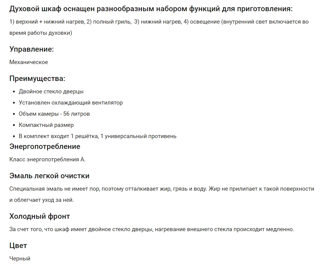 Объём духовки |