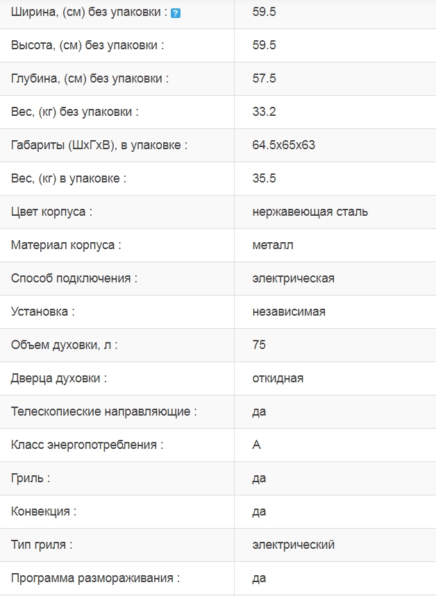 Объём духовки |