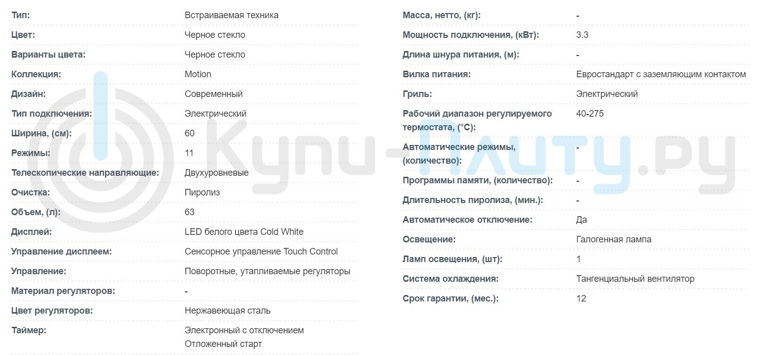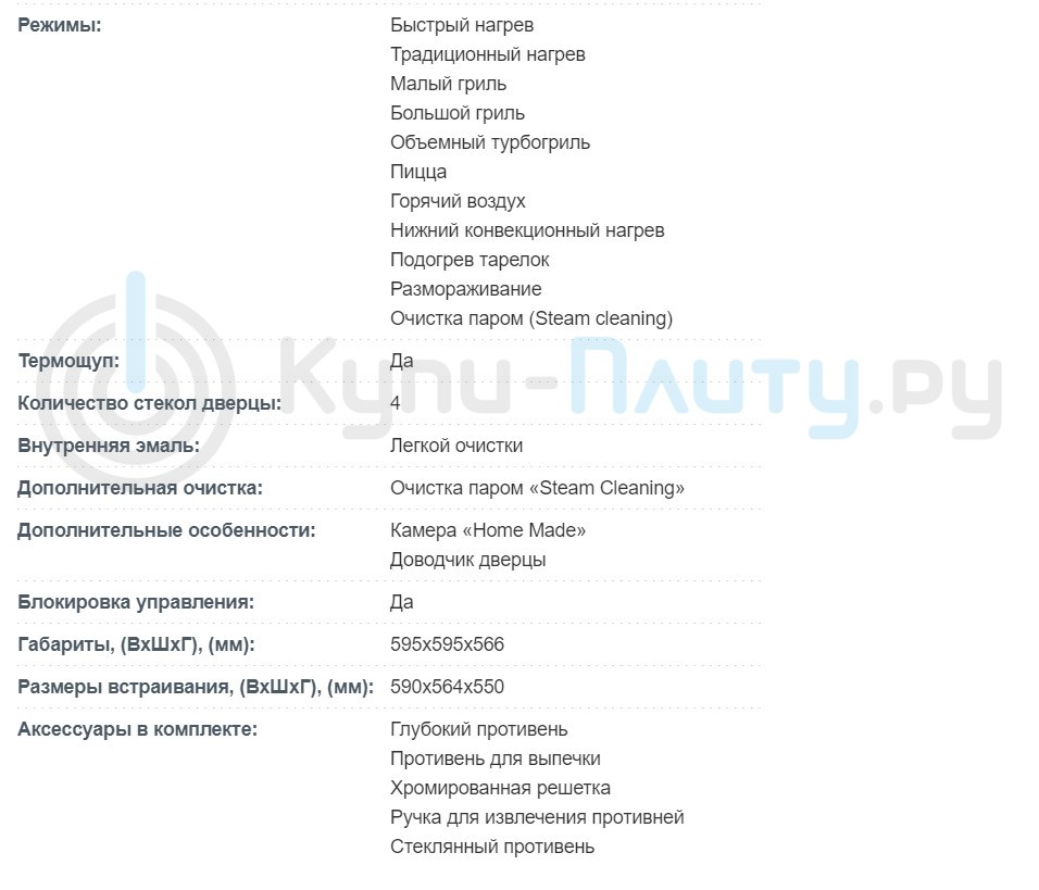 Объём духовки |