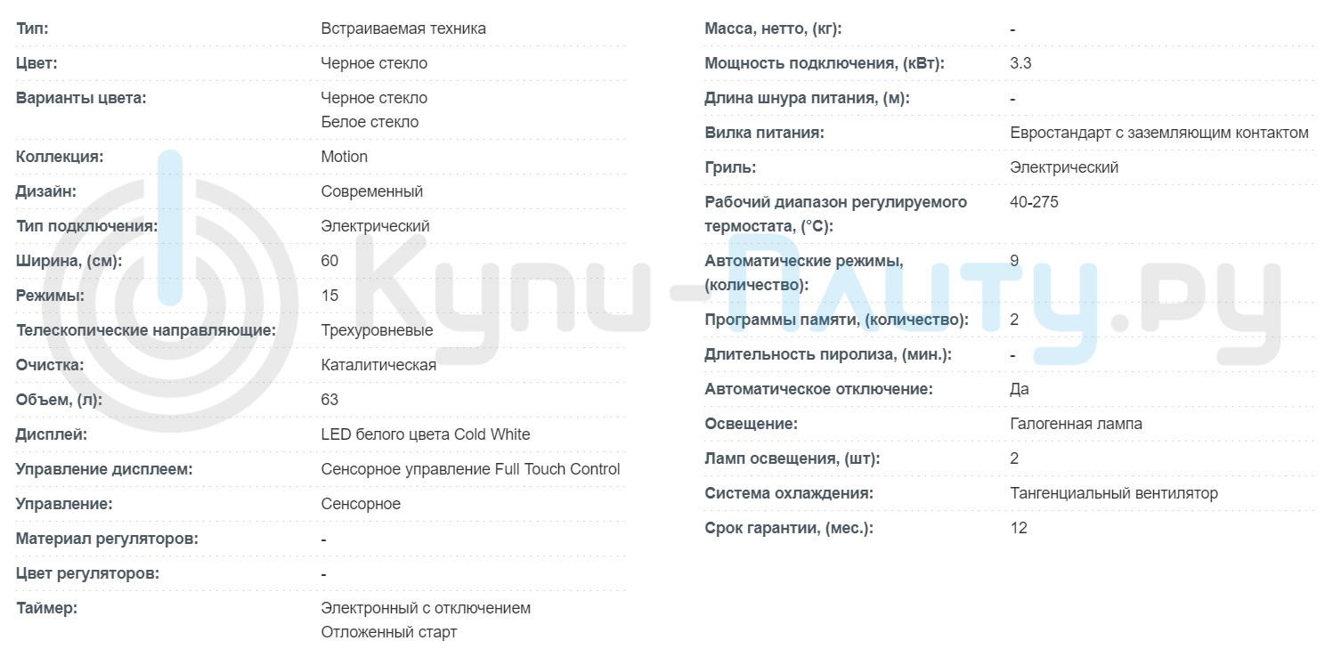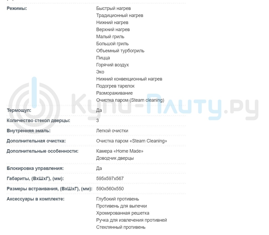 Объём духовки |