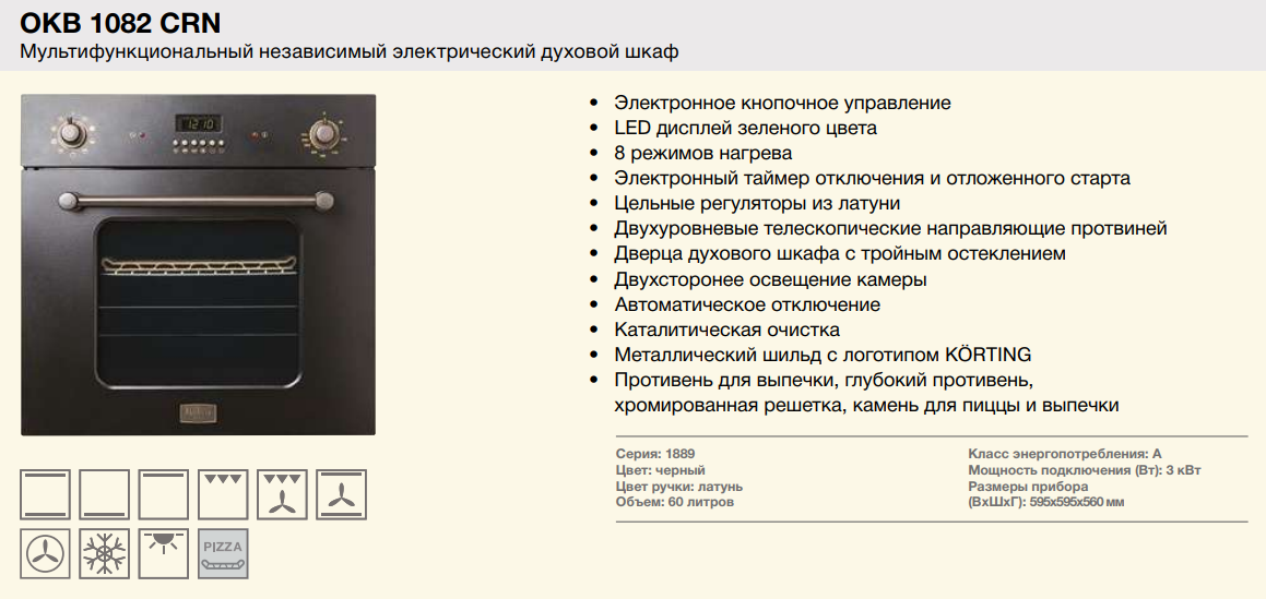 Электрический духовой шкаф Korting (Кёртинг) OKB 1082 CRN + видео о товаре