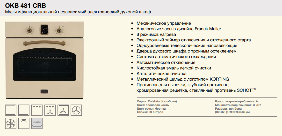 Электрический духовой шкаф Korting (Кёртинг) OKB 481 CRB + видео о товаре