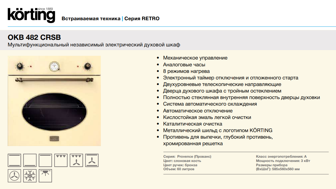 OKB 482 CRSB ? изысканная электрическая духовка объемом в 60 литров.