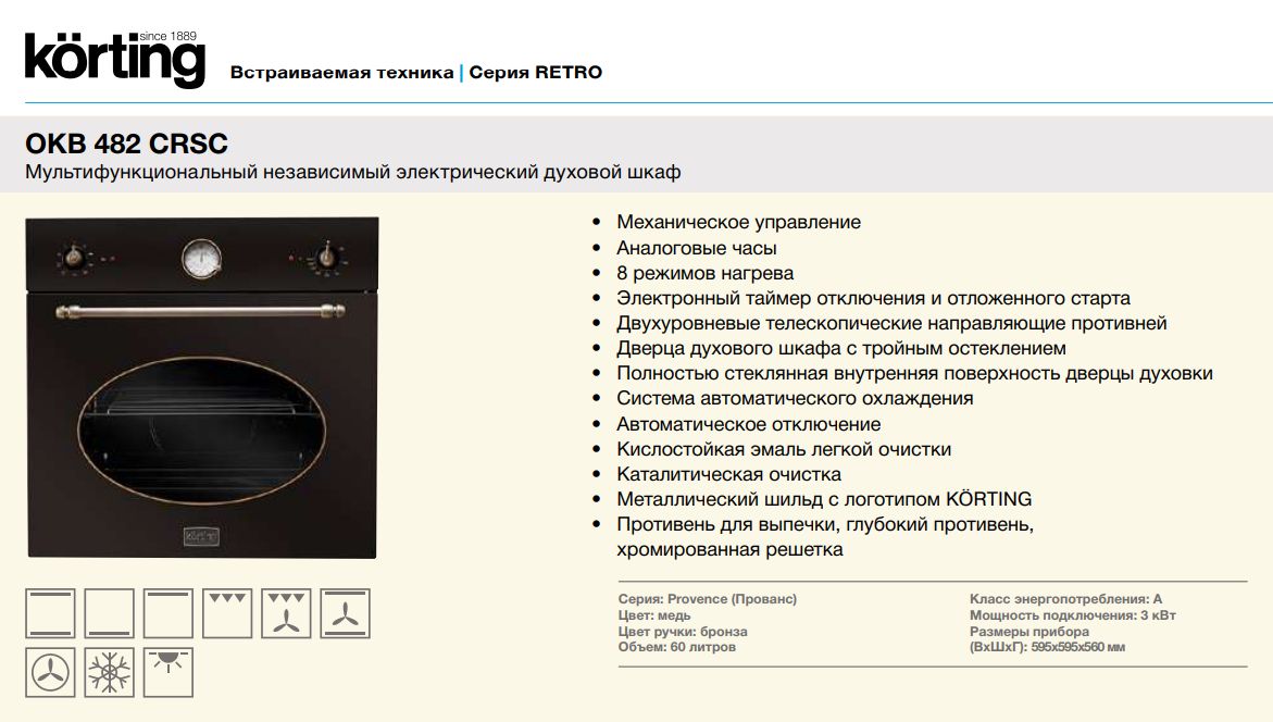 Электрический духовой шкаф Korting (Кёртинг) OKB 482 CRSC + видео о товаре