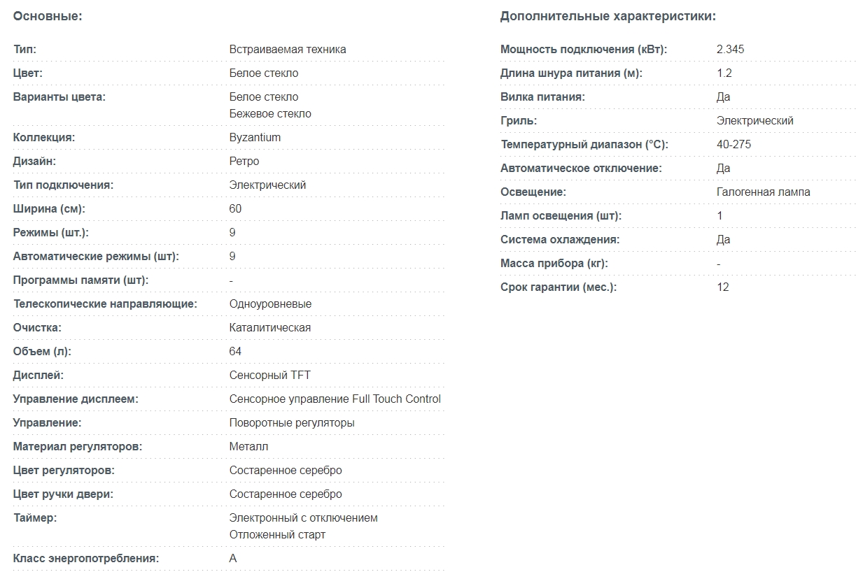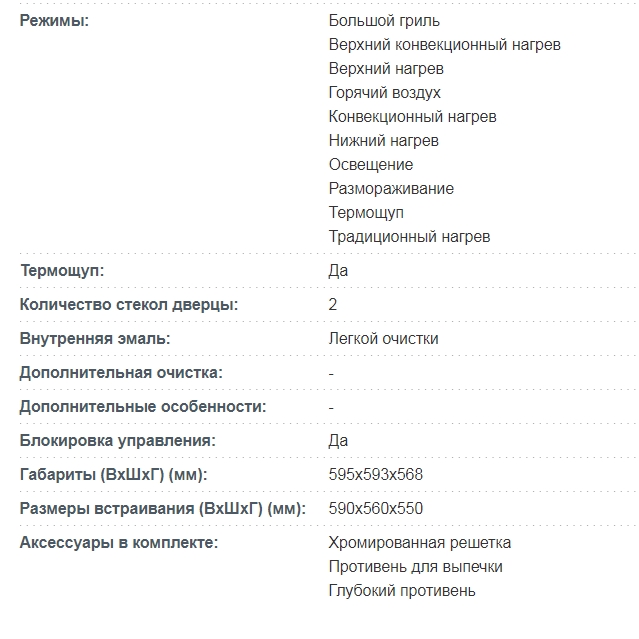 Объём духовки |
