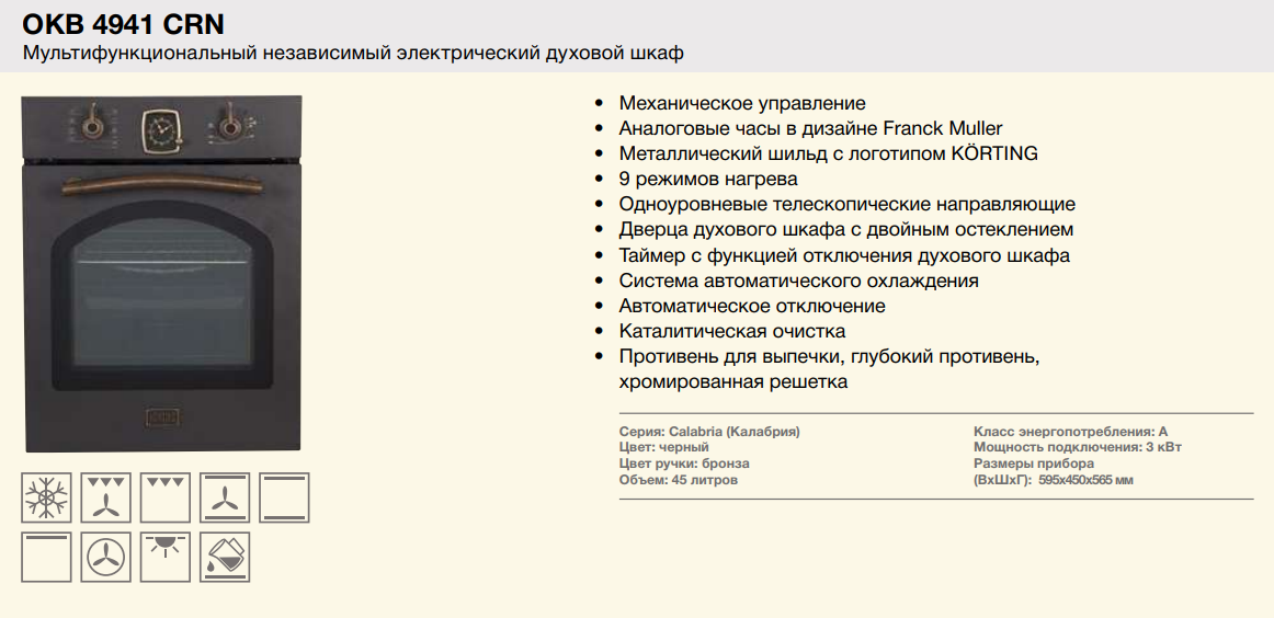духовой шкаф Korting OKB 4941 CRN – значит приобрести лучшего помощника по