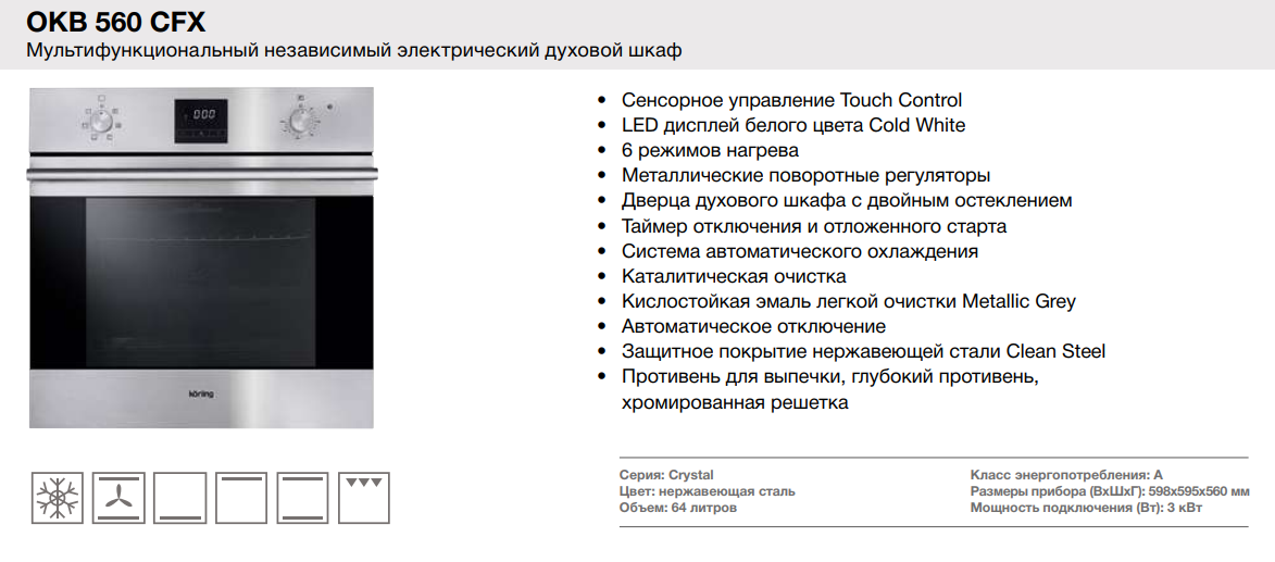 Электрический духовой шкаф Korting (Кёртинг) OKB 560 CFX