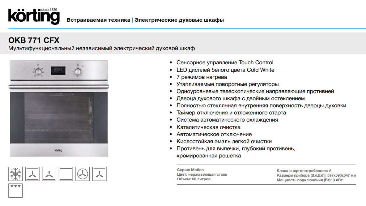 Электрический духовой шкаф Korting (Кёртинг) OKB 771 CFX + ВИДЕО О ТОВАРЕ