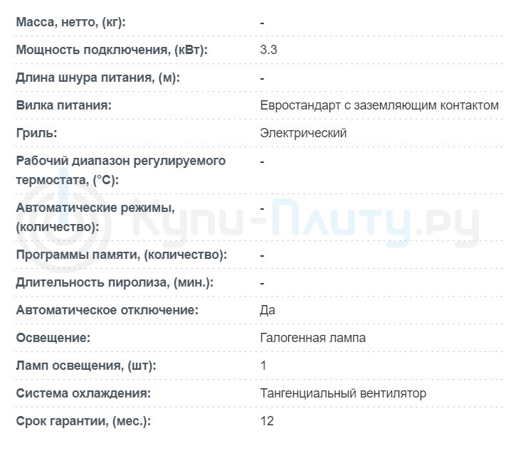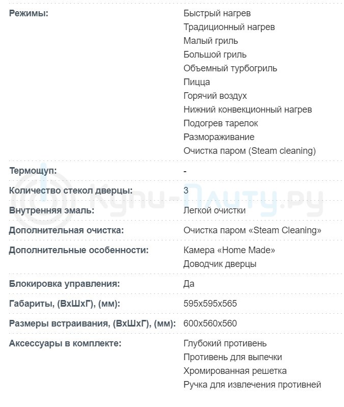 Объём духовки |