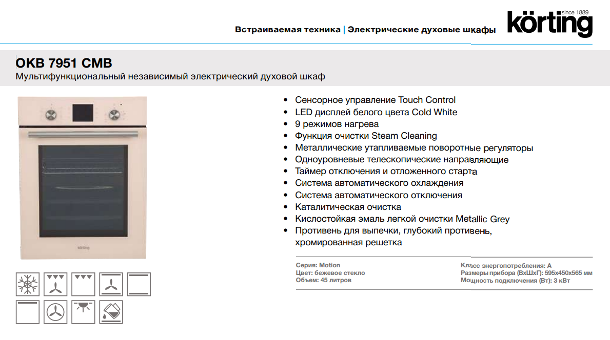 Электрический духовой шкаф Korting (Кёртинг) OKB 7951 CMB