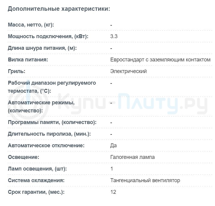 Объём духовки |