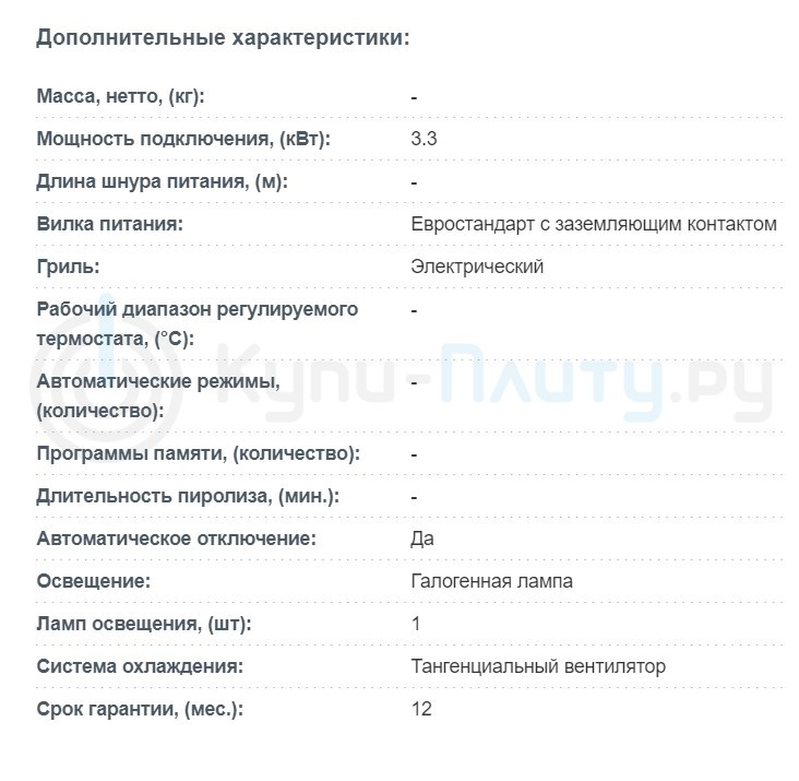 Объём духовки |