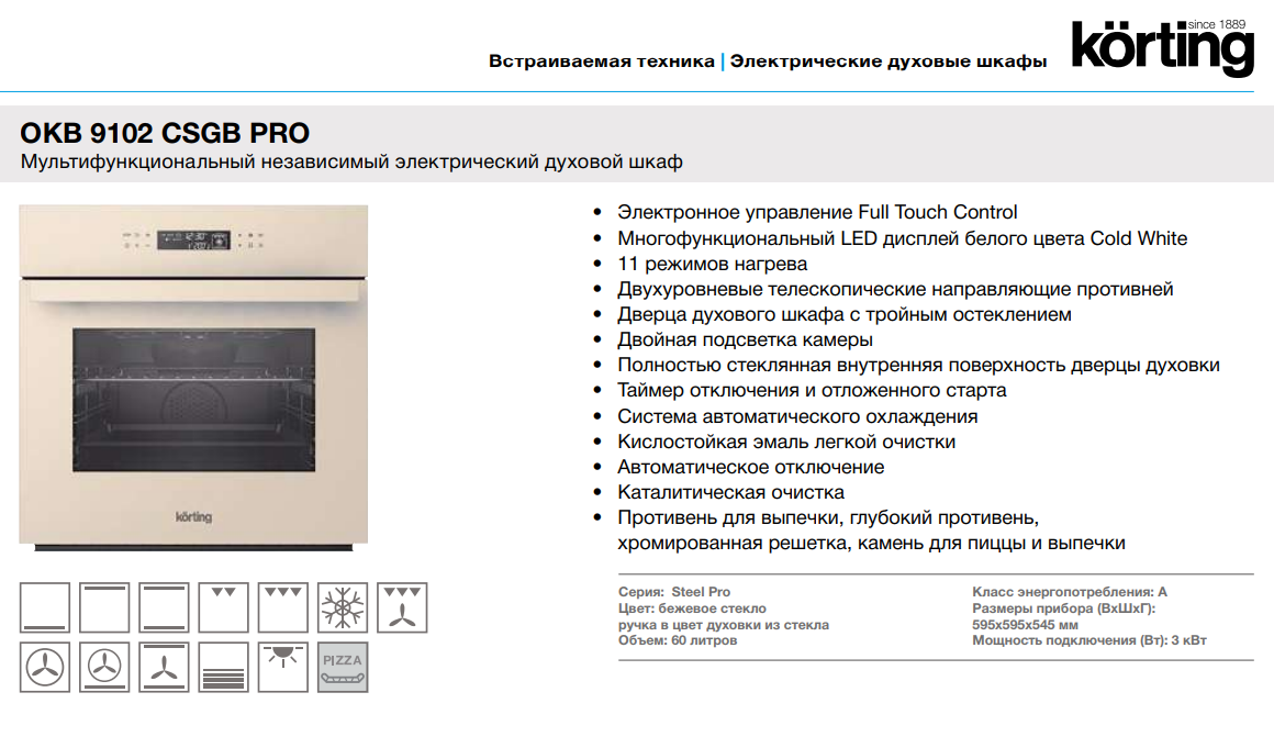 Электрический духовой шкаф Korting (Кёртинг) OKB 9102 CSGB Pro
