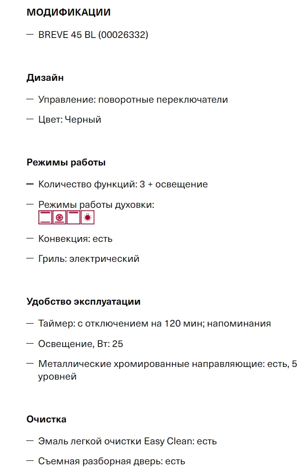Электрический духовой шкаф Krona (Крона) BREVE 45 BL