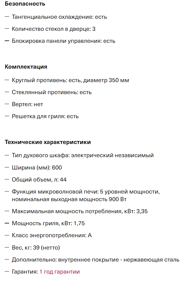 Объём духовки |
