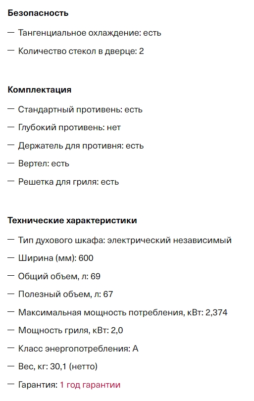 Объём духовки |