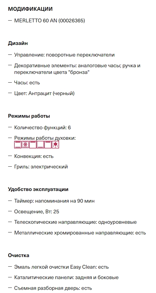 Электрический духовой шкаф Krona (Крона) MERLETTO 60 AN