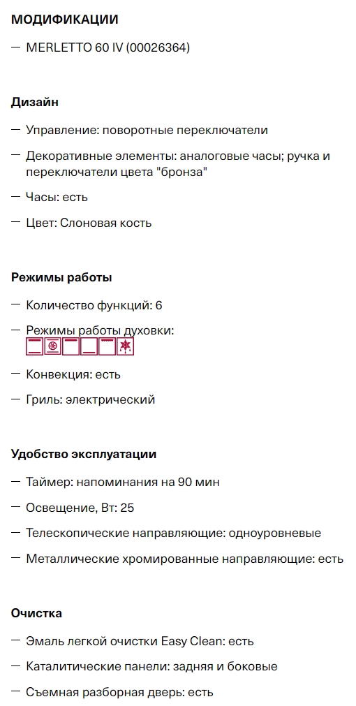 Электрический духовой шкаф Krona (Крона) MERLETTO 60 IV